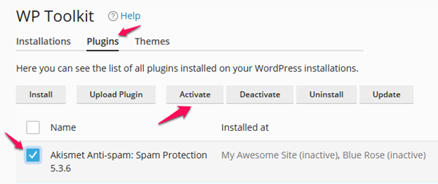 Step3: Click on the Plugins options. Select the plugins you wish to activate and click activate.