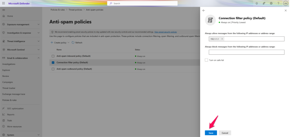 Step 5: In the Microsoft Defender portal, go to Email & Collaboration > Policies & Rules.