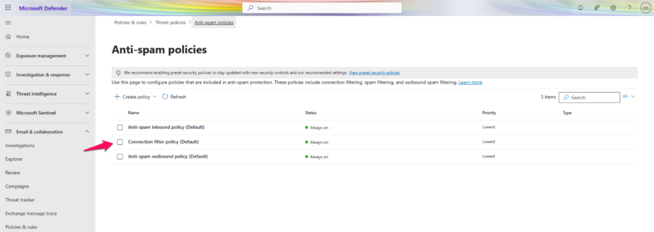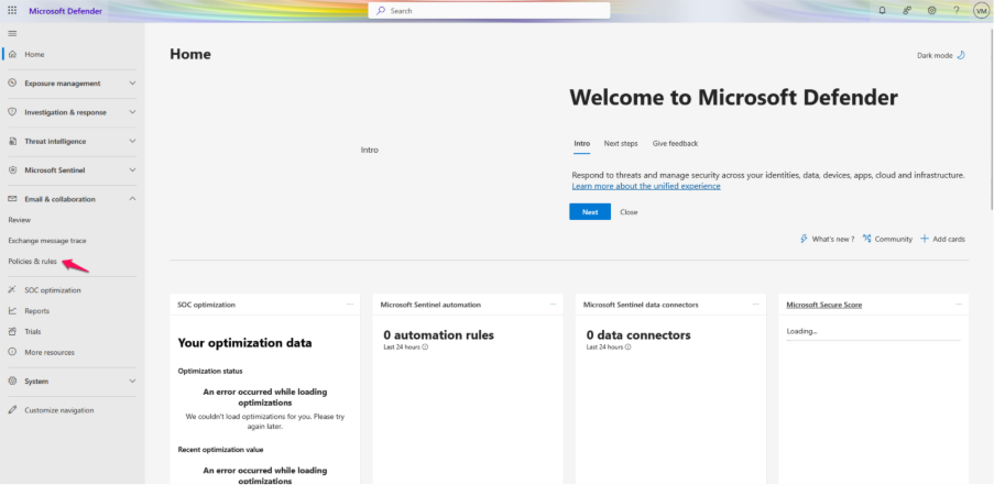 Step 5: In the Microsoft Defender portal, navigate to ‘Email & Collaboration’ and then select ‘Policies & Rules’.