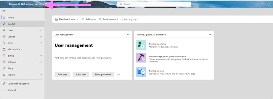 Go to Microsoft 365 Admin Center.