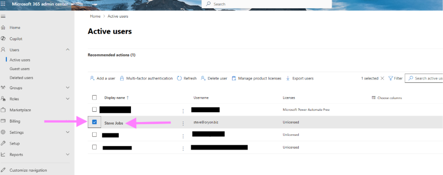 Step 3: Select the User