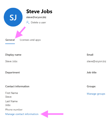 Under General settings, click on the Manage Contact Information option.
