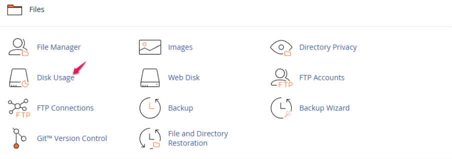 Step 2: Click on “Disk Usage” under the Files section.