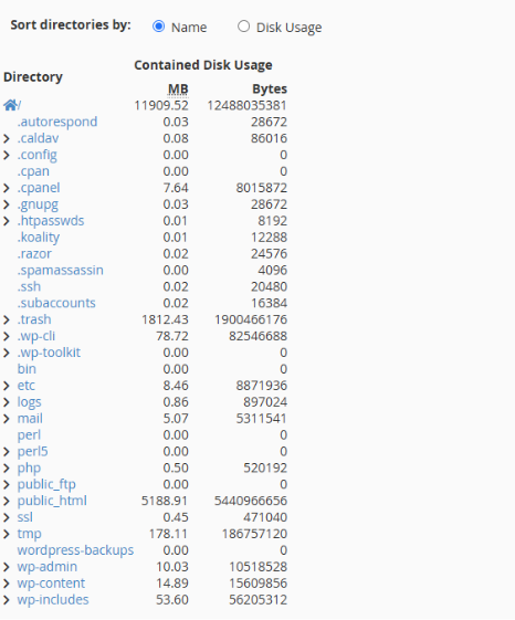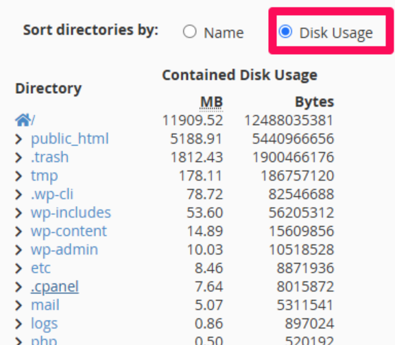 Step4: Click the available buttons to sort the directories by Name or Disk Usage.
