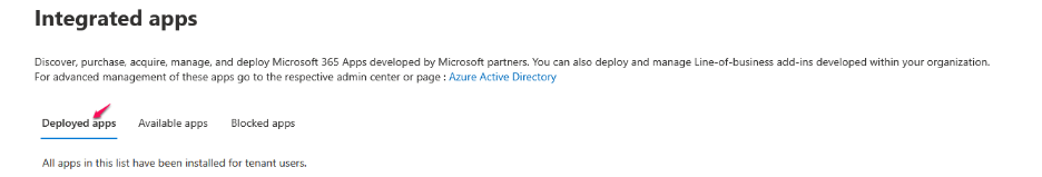 - This list will include both Microsoft apps (like Microsoft Teams, SharePoint, etc.) and third-party apps or custom apps that have been deployed.