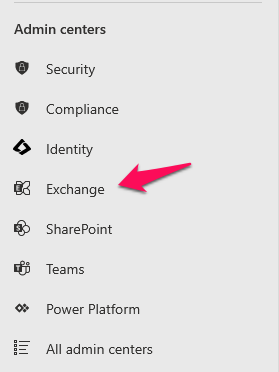 Step3: Click on the Exchange option in the left navigation pane to navigate to the Exchange admin center.