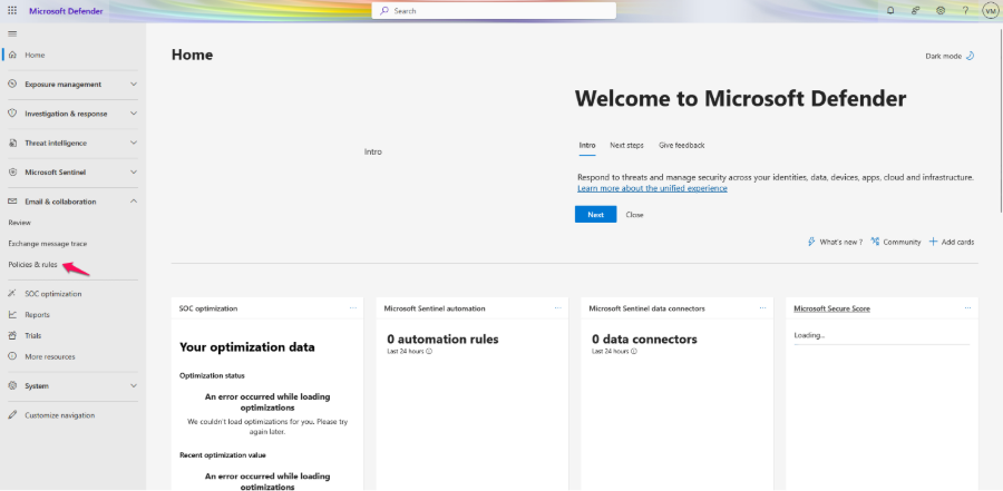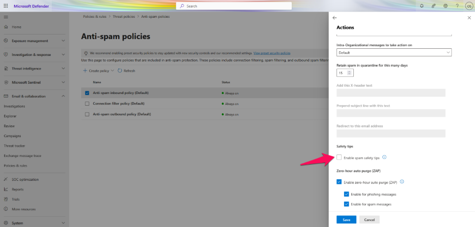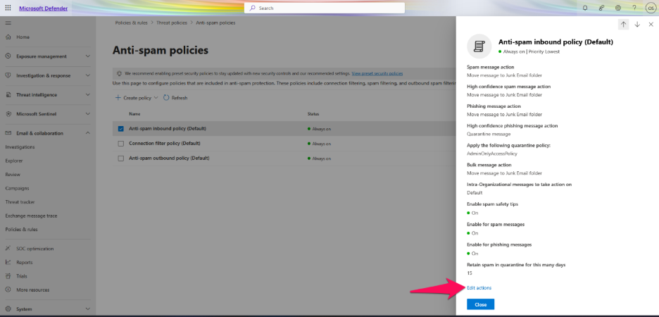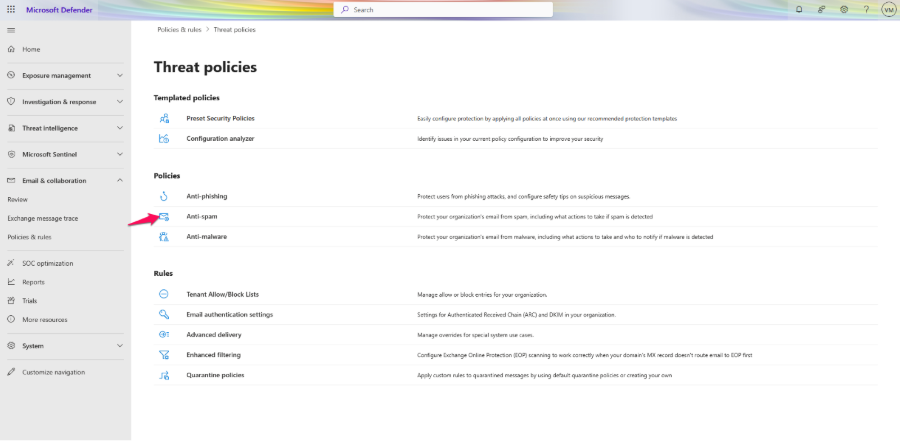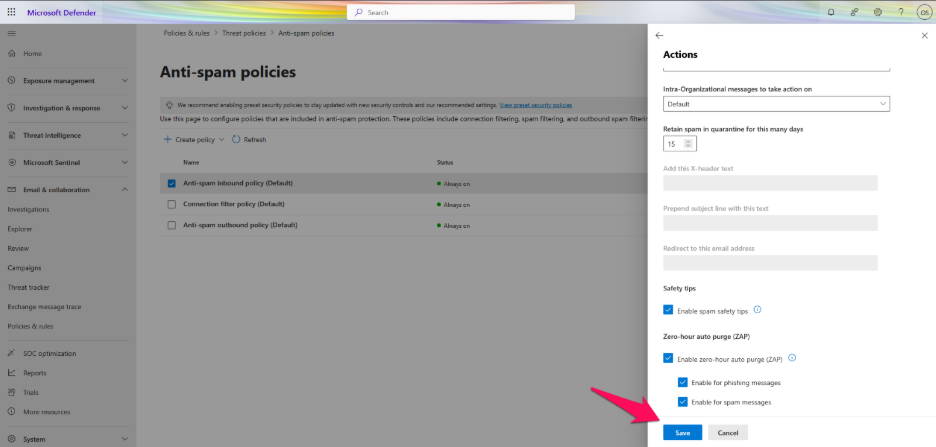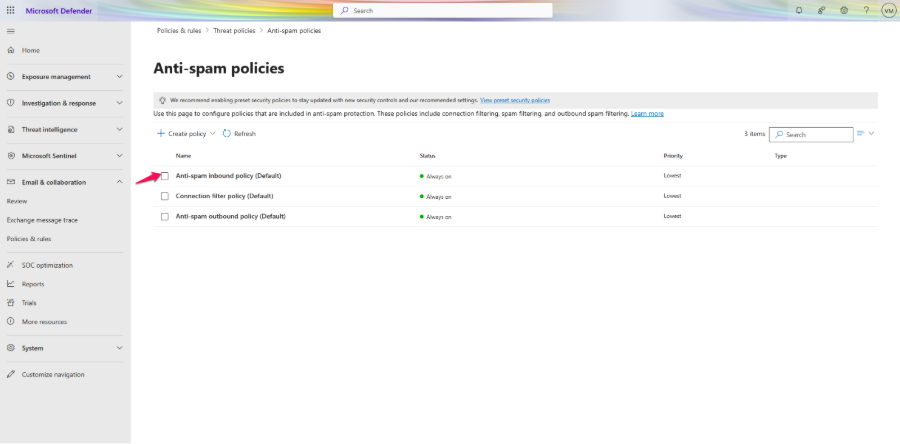 Step 8: Select Anti-Spam Inbound Policy (Default).