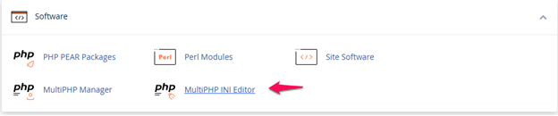 Step 2: Scroll down and click on the MultiPHP INI Editor under the Software option.