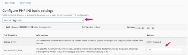 Step 3: Select the domain and edit the max_execution_time. Click on the apply changes.