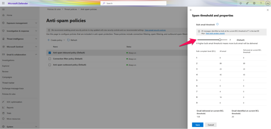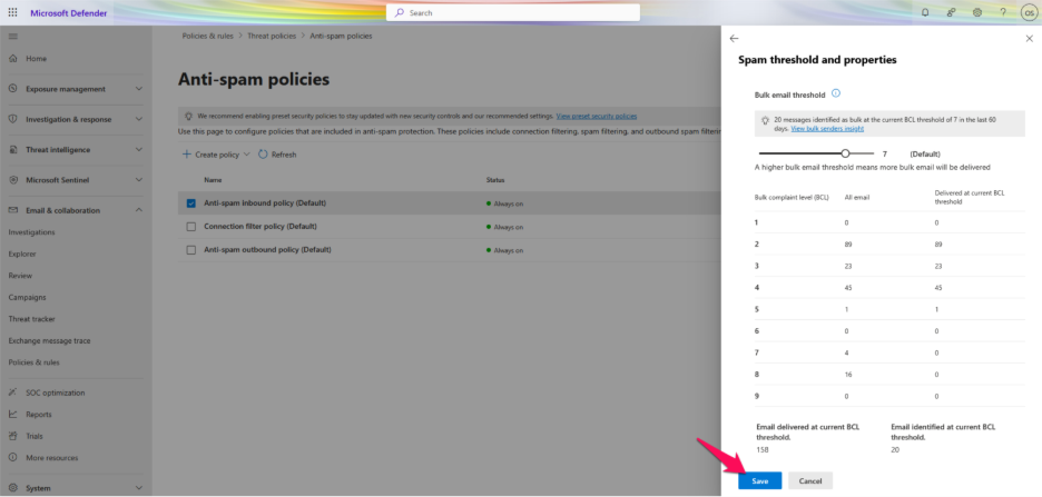 Step8: Select Anti-Spam Inbound Policy (Default).