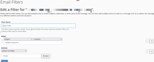- Provide a name for your filter (e.g., “Spam Filter”, “Work Emails”, etc.).