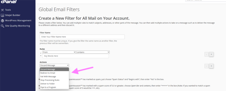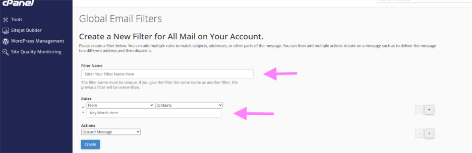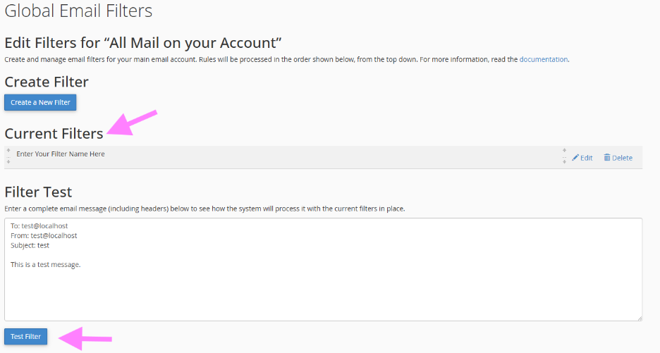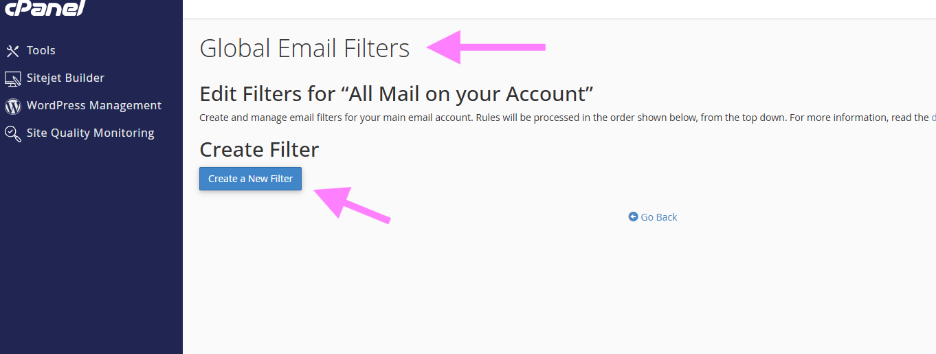 Step 3: In the Global Email Filter section, click on Create a New Filter.