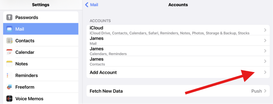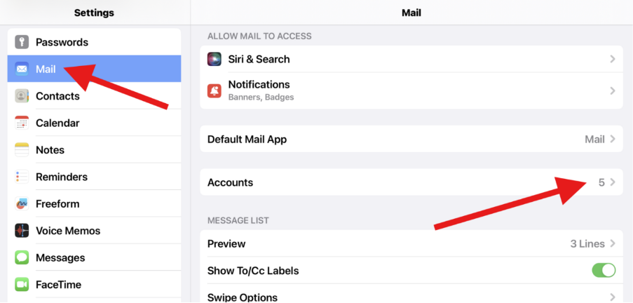 Step 1: Open the “Settings” app on your iPhone and scroll down to select “Mail”. Then, tap on “Accounts”.