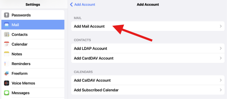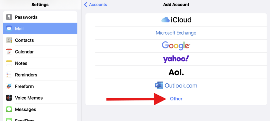 Step 6: Choose either “IMAP” or “POP” as the account type. IMAP is recommended because it allows you to sync your emails across multiple devices, while POP downloads emails to the specific device. Tap “Next”.