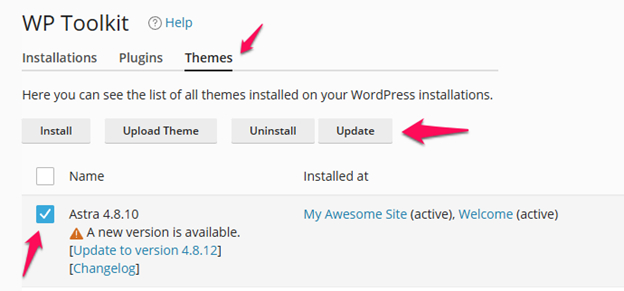 Step4: Select the theme that you wish to update and click update to update the theme version.