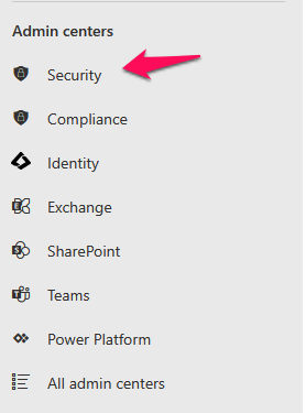 Step3: Click on the Security option under the Admin centers in the left navigation pane and navigate to the Microsoft Defender Admin center.