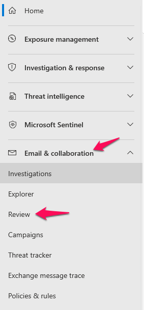 Step4: Click on the Email & Collaboration option in the left navigation pane and then click on the Review under the Email & Collaboration.