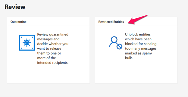 Step5: Click on the Restricted Entities option and it will navigate to the restricted and blocked email in your admin panel.