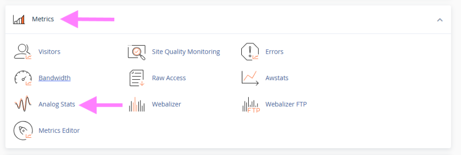 Step 2: Navigate to Metrics → Click Analog Stats.